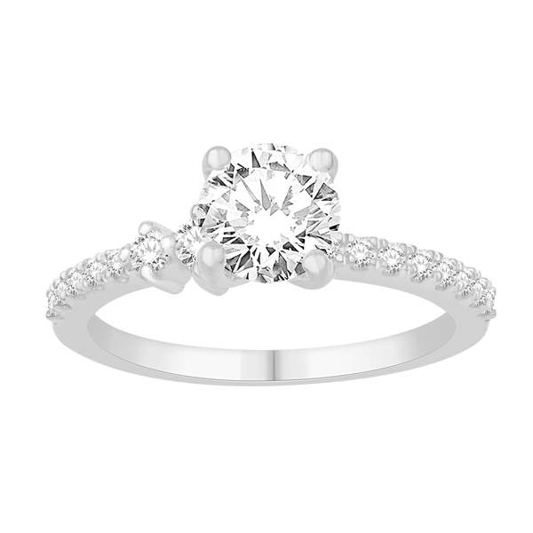 14K White Gold Classic Engagement Ring With Round Diamonds On Both Sides. Center Piece Is Not Included .