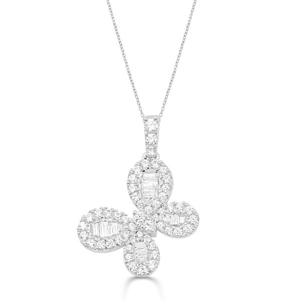 14K WHITE GOLD BUTTERFLY PENDANT WITH ROUND AND BAGUETTE DIAMONDS.CHAIN NOT INCLUDED