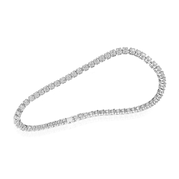 14K White Gold Flexible Tennis Bangle With 4.00 Carat Round Diamonds