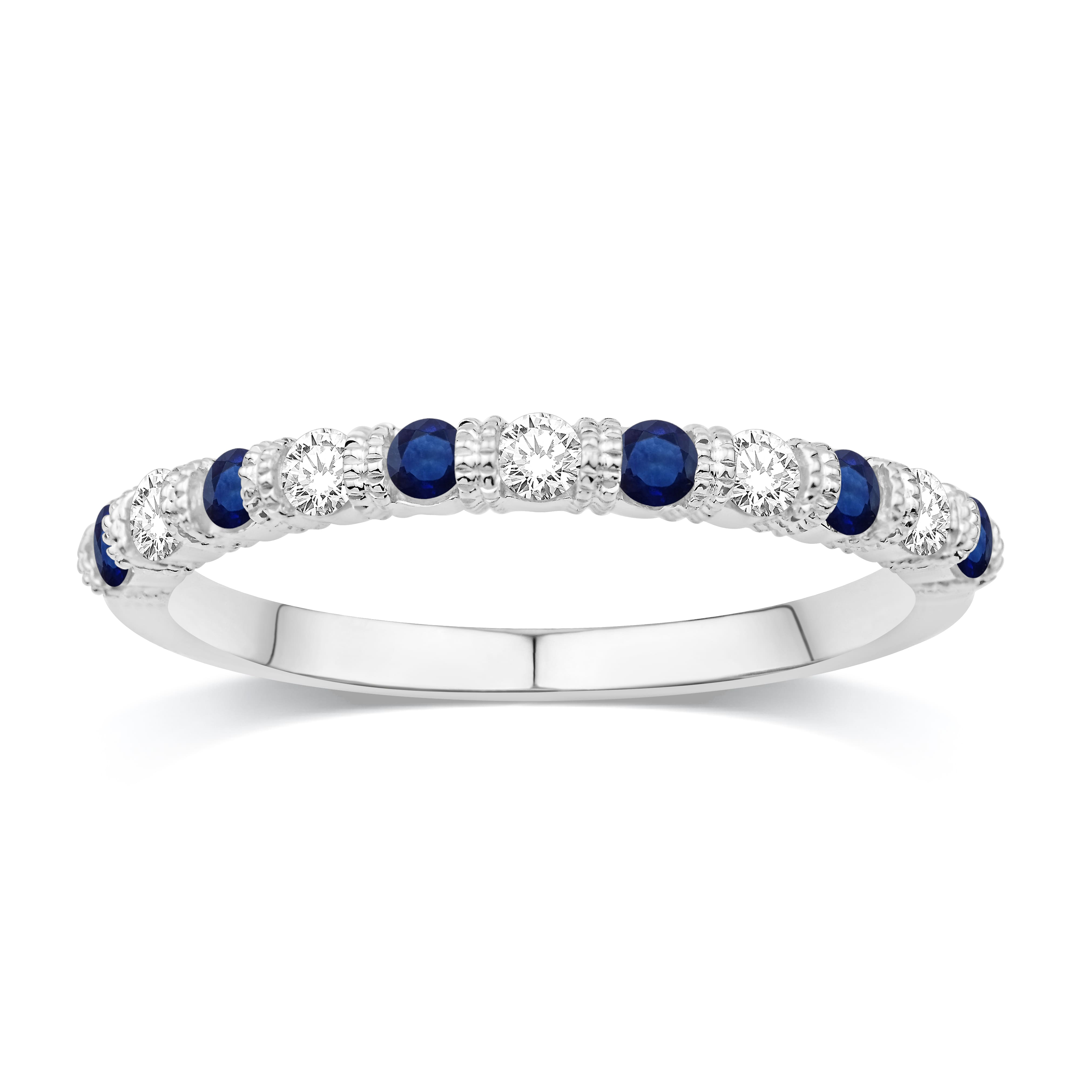 14K Yellow Gold Stackable Ring with Sapphires and Diamonds