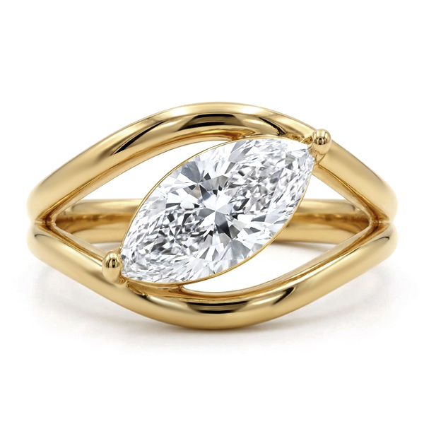 14K Yellow Gold Semi Mount Engagement Ring For 2CT Oval Center Stone . Center Stone Is Not Included