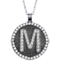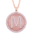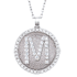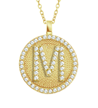Sparkling gold plated silver and Cz. with your choice of capital letter on this personal initial M disk pendant. This pendant is crafted in 60 white Cz with 15mm diameter size disk. This pendant comes with 16 or 18 inches silver cable chain.