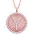 Sparkling black rhodium plated silver and Cz. with your choice of capital letter on this personal initial Y disk pendant. This pendant is crafted in 48 white Cz with 15mm diameter size disk. This pendant comes with 16 or 18 inches silver cable chain.