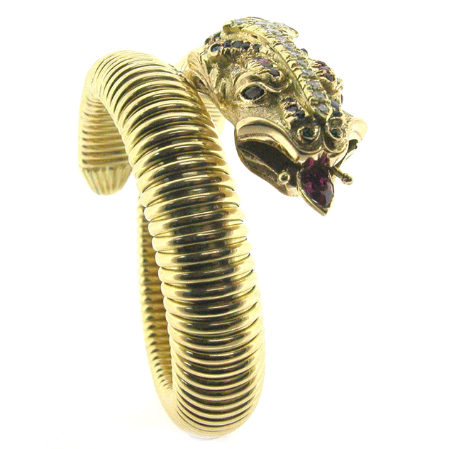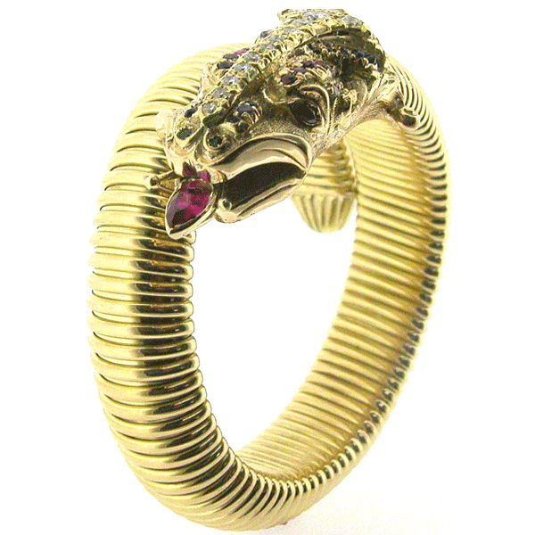 18K yellow gold dragon estate diamonds rubies, sapphires and emeralds bangle