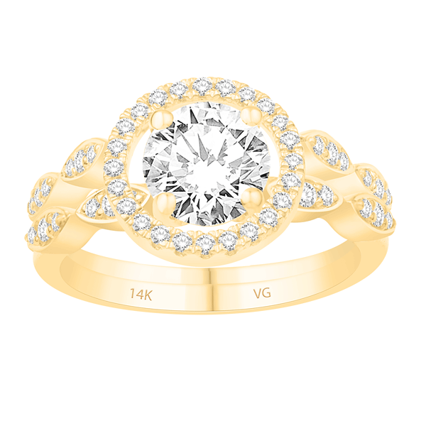 14K YELLOW GOLD CLASSIC ENGAGEMENT RING/WEDDING BAND SET WITH SIDE ROUND DIAMONDS. CENTER STONE IS NOT INCLUDED. THIS IS OUR RING JACKET COLLECTION . CENTER PIECE IS NOT INCLUDED.