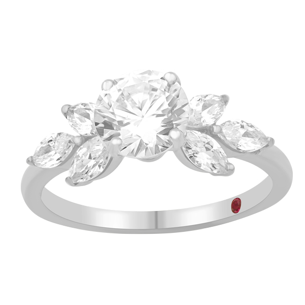 14K Two Tone Elegant ,Timeless Engagement Ring Featuring Marquise Diamonds And Round Ruby. Center Stone Is Not included .